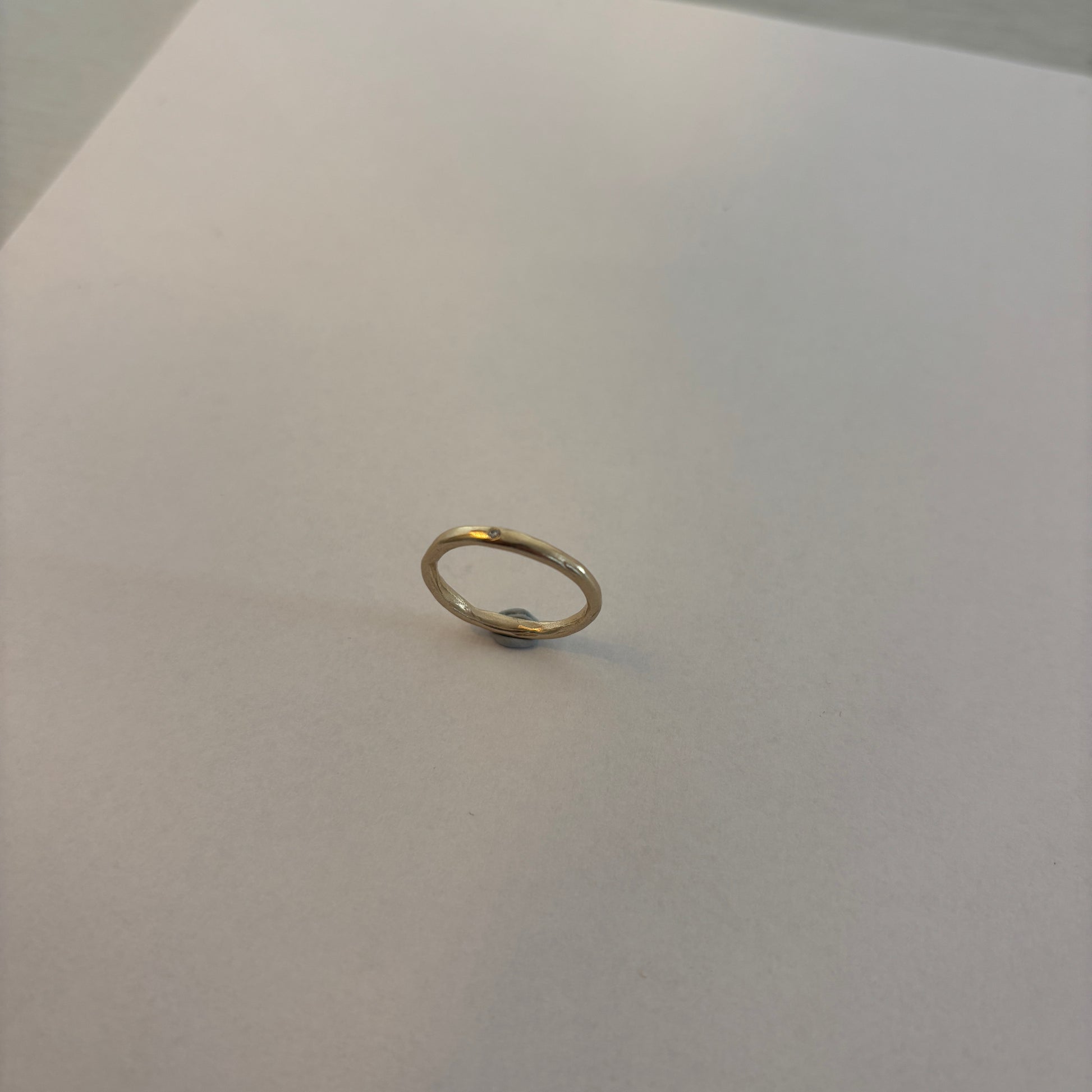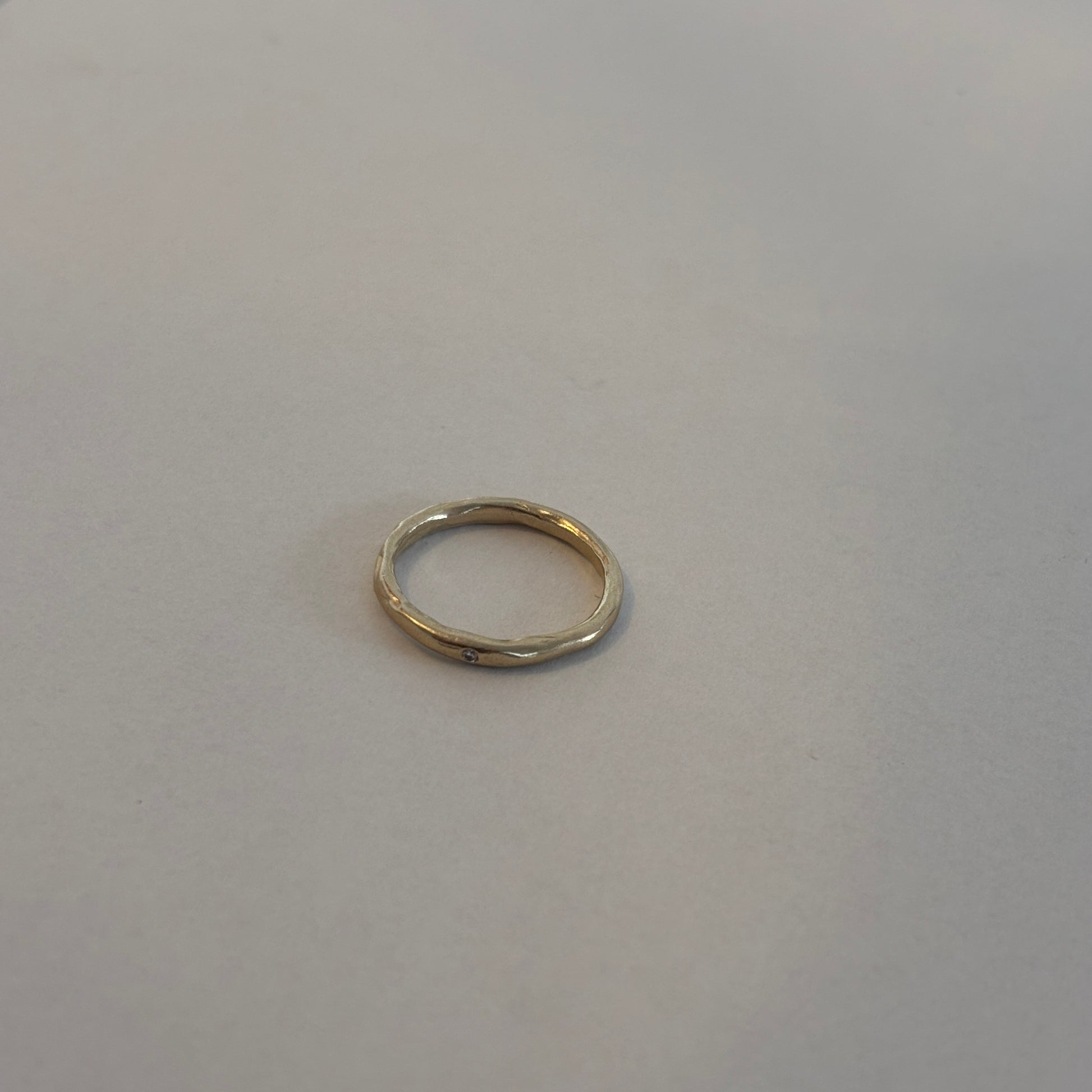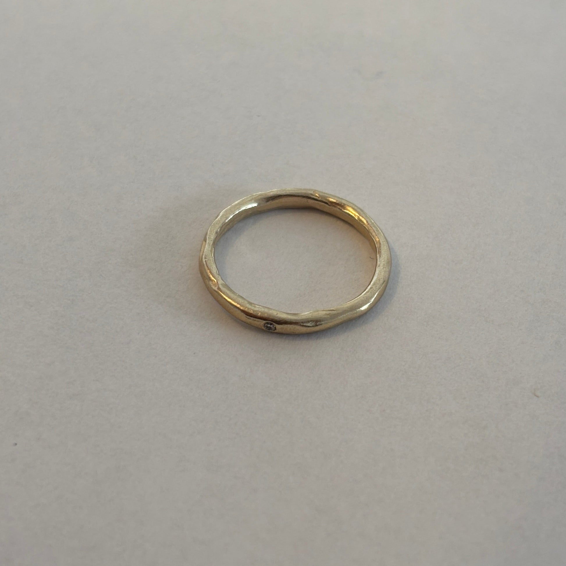 The Gold Diamond ring is crafted from solid 9ct Gold and features a 1.5mm diamond set into a fine textured band, with softly uneven details. This ring can be worn individually or stacked together.